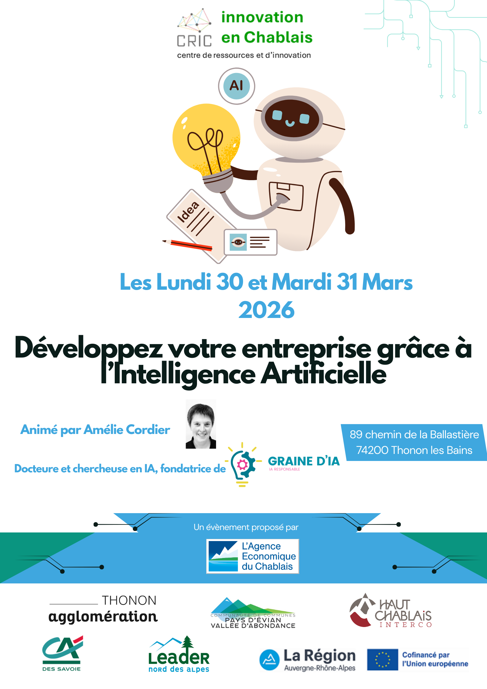 L’inscription à la formation niveau 1, en partie pris en charge par l’Agence Économique du Chablais est disponible ici: https://www.helloasso.com/associations/l-agence-economique-du-chablais/evenements/journee-intelligence-artificielle-2